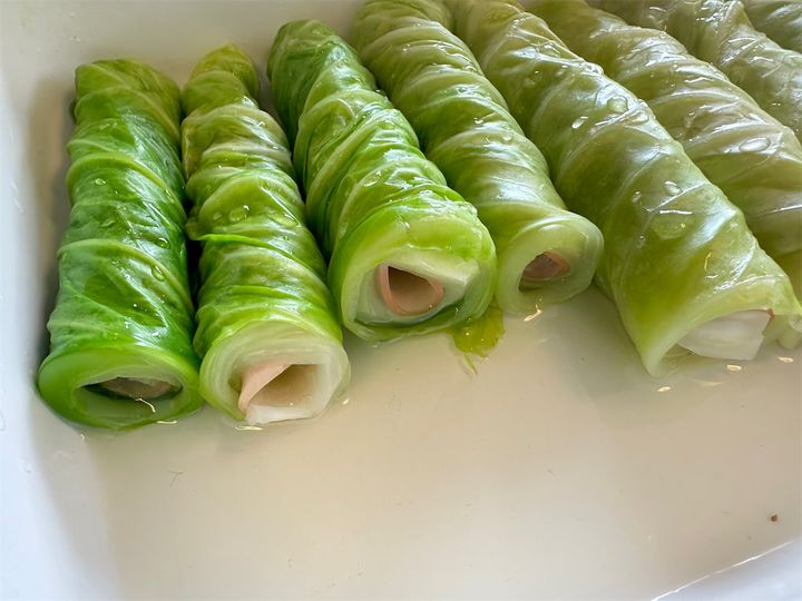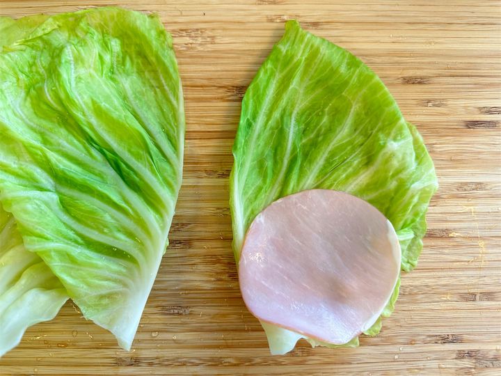 今回、違うキャベツの大小混みの葉を使いましたが、要はハムが巻ければ◎。