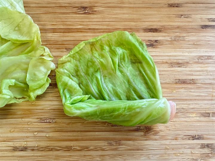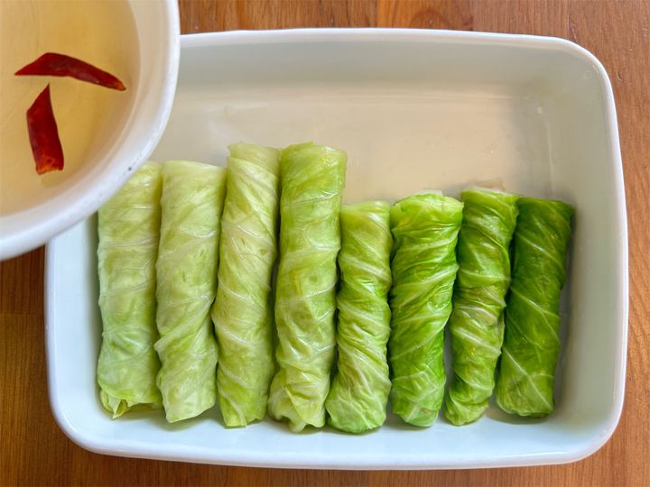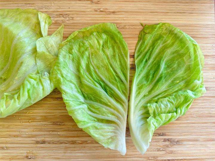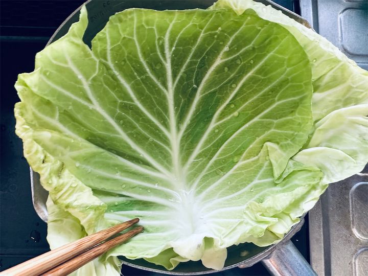 キャベツの葉は大小混みで作っています。電子レンジでチンしても良さそうですね。