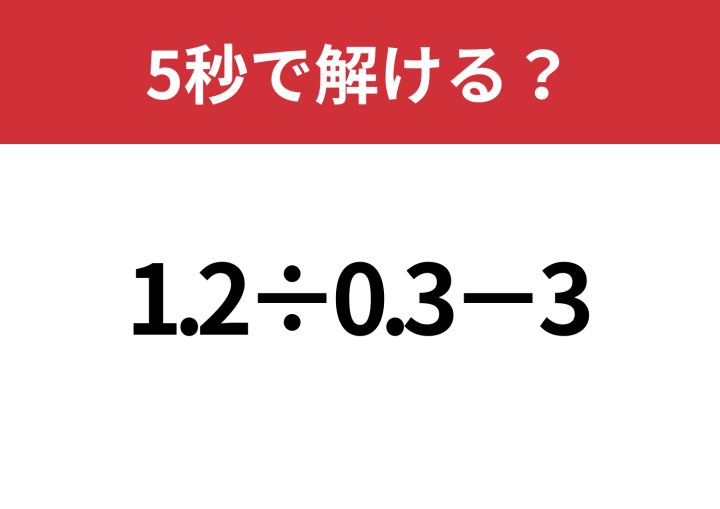 簡単そうだけど、意外と難しいかも!?「1.2÷0.3−3」5秒で解ける?