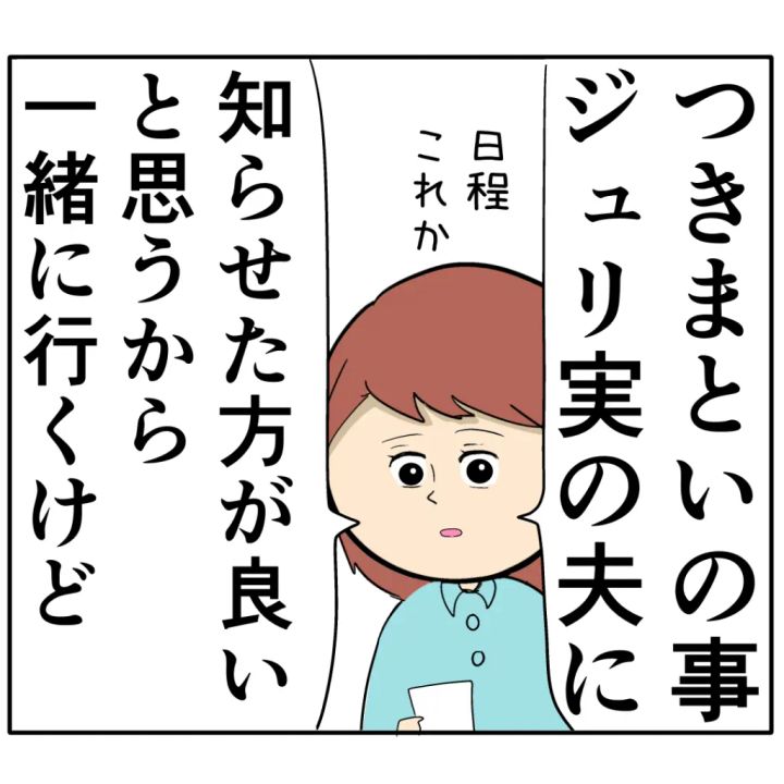 「つきまといの事、ジュリ実の夫に知らせた方が良いと思うから一緒に行くけど」とめいさん。