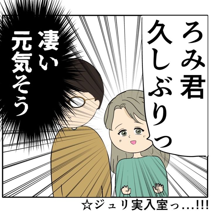 「ろみ君久しぶりっ!」ろみ緒さんの想像はどこへやら、すっごく元気そうなジュリ実さんが旦那さんと入室したのでした。