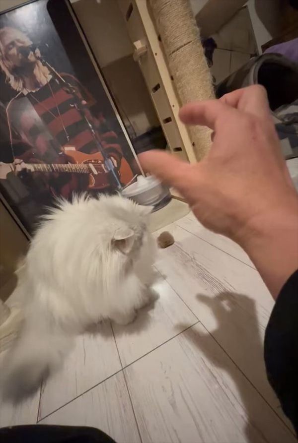 飼い主さんの手の影の動きが気になる愛猫。 そのリアクションが話題になっています。