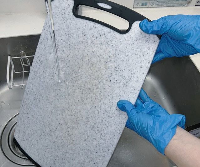 3. まな板のぬめりはアルカリ性洗剤をつけて洗う