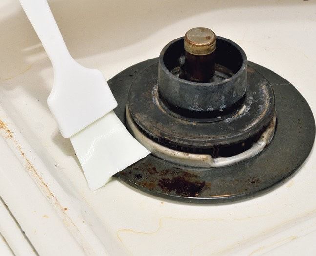 アルカリ性洗剤にアルコールをほんの少し加えて特製洗剤を作り、コゲに塗り込む。