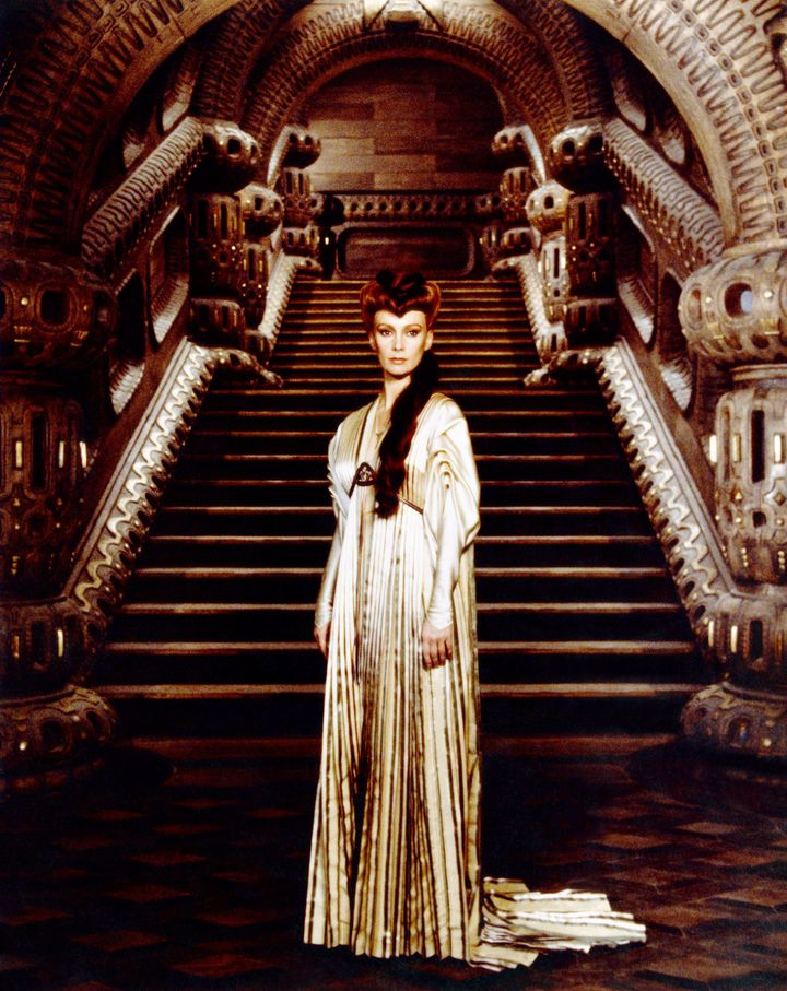 SF大作『デューン/砂の惑星』のファイナルカット版をめぐってスタジオと対立したリンチは本作を失敗作としたかもしれないが、彼はデザイナーのボブ・リングウッドとともに今もなお語り継がれる独創的なコスチュームの数々を生み出した。フェイド・ロイタ役のスティングのルックも賞賛に値するが、最も芸術的な衣装はレディ・ジェシカ役のフランチェスカ・アニスが纏ったもの。この世のものとは思えない女神を連想させるガウンに加え、手の込んだヘアスタイルは、一度見たら忘れられないほどのインパクトを放つ。