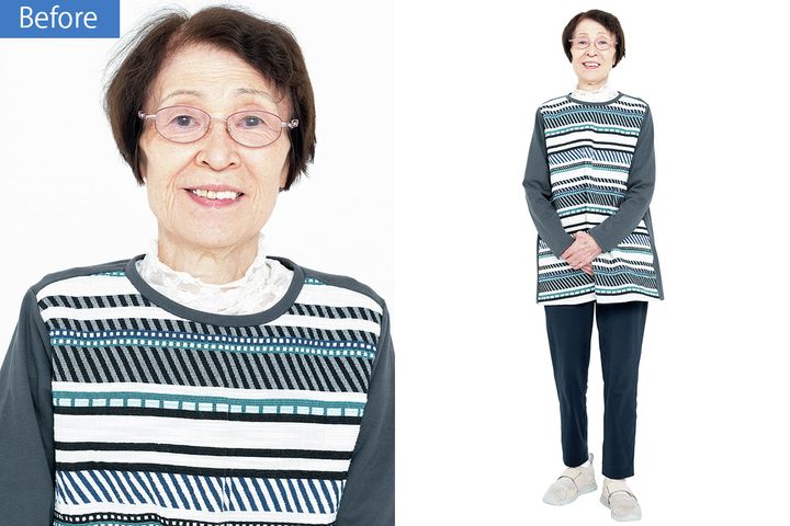 「撮影後も何度も手鏡を満足げに見ていました。こんな色のリップが欲しいなど、こだわりをもってお洒落を楽しむようになりました」(孫・真央さん)「撮影が進んでいく中で自信あふれる姿に変化していきびっくり」(義息子・恭一さん)「イキイキとした母の姿に感動です」(娘・千佳子さん)