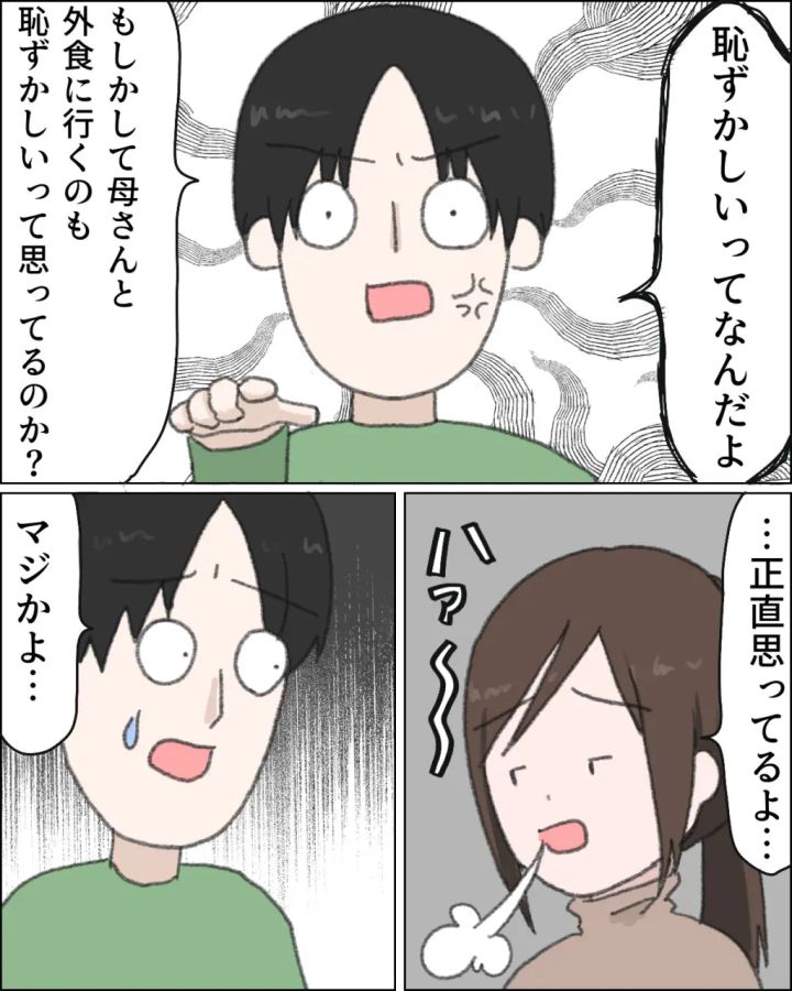 「恥ずかしいってなんだよ」と、夫は今度は怒り出しました。「もしかして母さんと外食に行くのも恥ずかしいって思ってるのか?」とうとう義母の話が出たので「・・・正直思ってるよ」と、ため息交じりにずっと思っていたことを吐き出してしまいました。