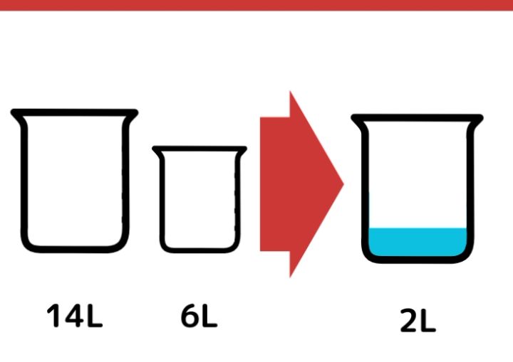 水がちょうど2L入る容器が手元にありません。14Lと6Lの容器を使って、ちょうど2Lの水を計る方法を考えてください。