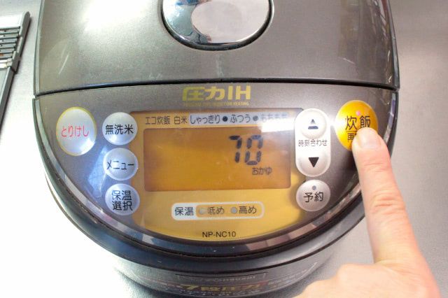 あとはおかゆモードで70分炊飯するだけです。
