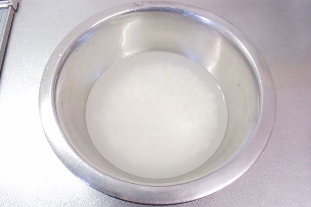 軽く洗ったお米を30分ほど水に浸けておきました。