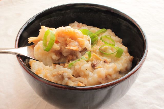 オリジナルチキンのおいしさが、もっちりとしたお粥に染みている♪