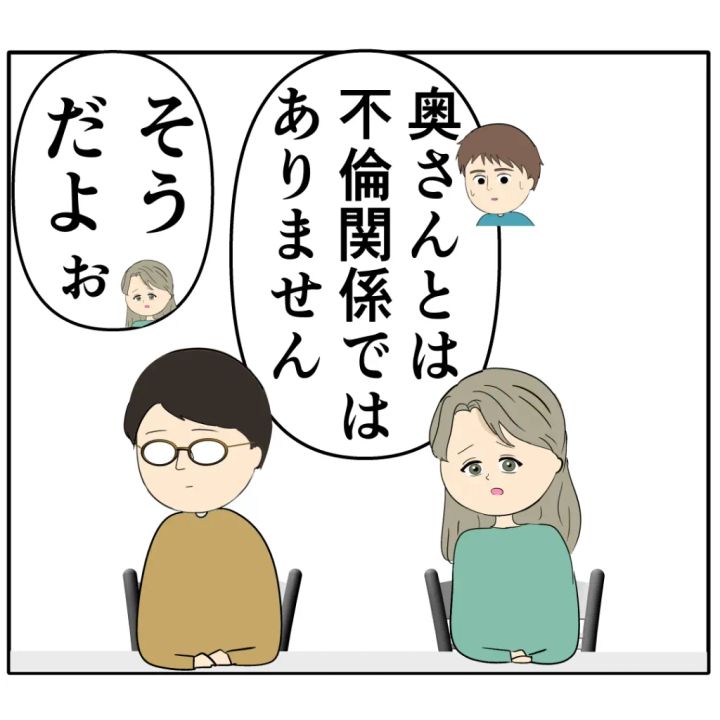 ジュリ実さんと旦那さんも到着し、いよいよ話し合いが始まりました。「不倫関係じゃない。落ち着いて話せば大丈夫だ」と心の中で呟くろみ緒さん、「えっと・・まず先に」と話を切り出しました。
