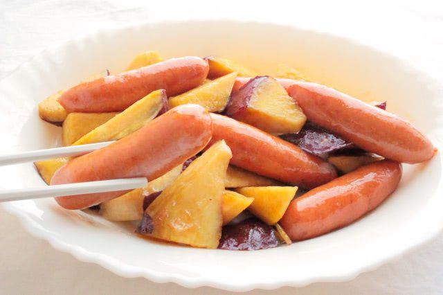日本ハムのサイトで見つけた「シャウエッセンの大学芋」は、シャウエッセンとさつまいも、常備している調味料で手軽に作れる一品でした。