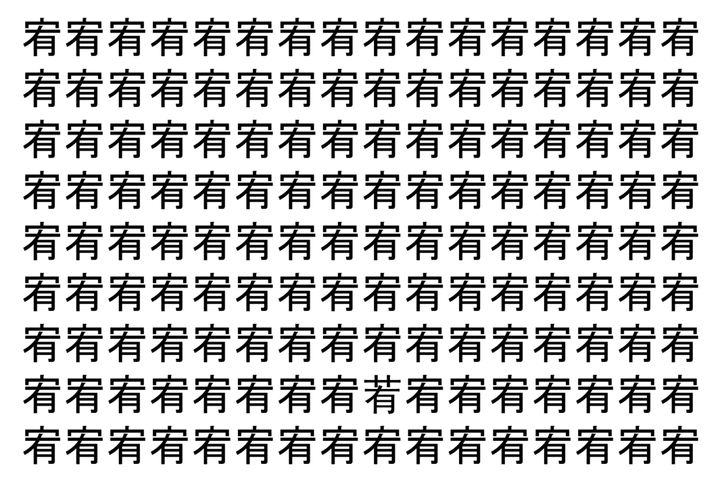 画像に並んだたくさんの「宥」という漢字。 その数144個なのですが・・・、実はその中に1つ違う漢字が紛れ込んでいます!!
