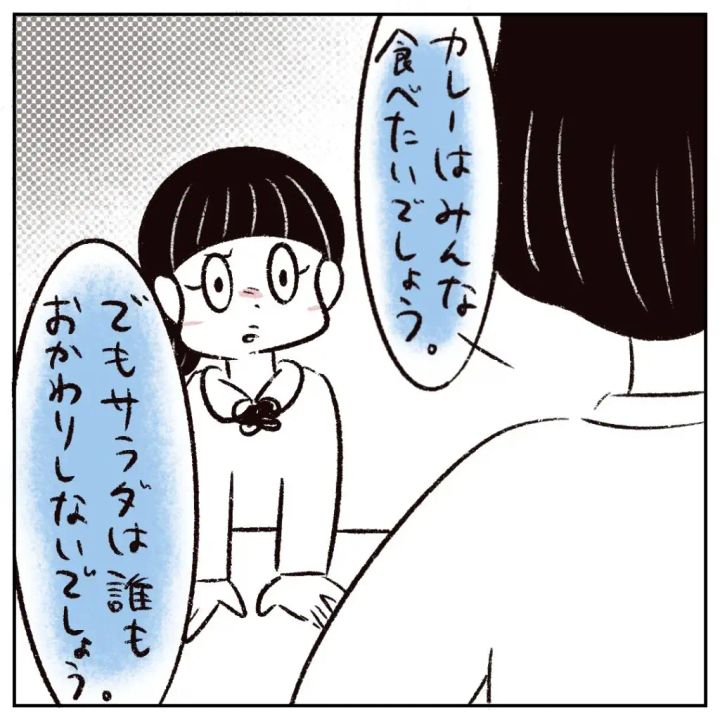 そして、「カレーはみんな食べたいでしょう。でもサラダは誰もおかわりしないでしょう」
