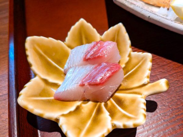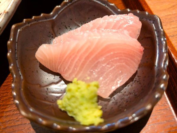 ハマチのお造りです。脂がのってピチピチです。お造り付きのカラダにやさしい健康的な定食は、おいしくて、見た目も美しいですね~。お腹いっぱいになりました。