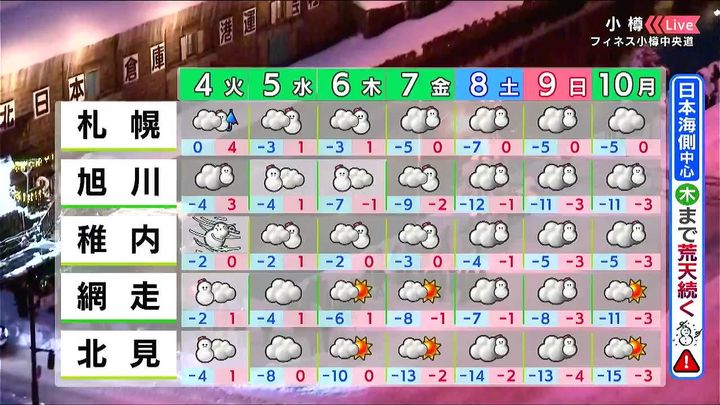 北海道のあす2月4日(火)の天気と、週間予報を、HBCウェザーセンターの児玉晃(こだま・あきら)気象予報士がお伝えします。