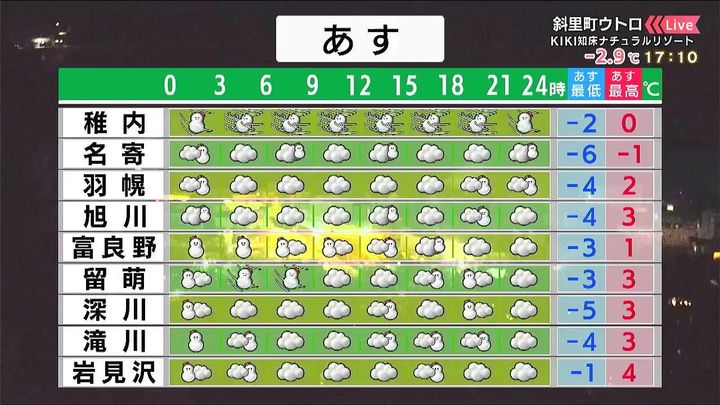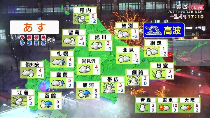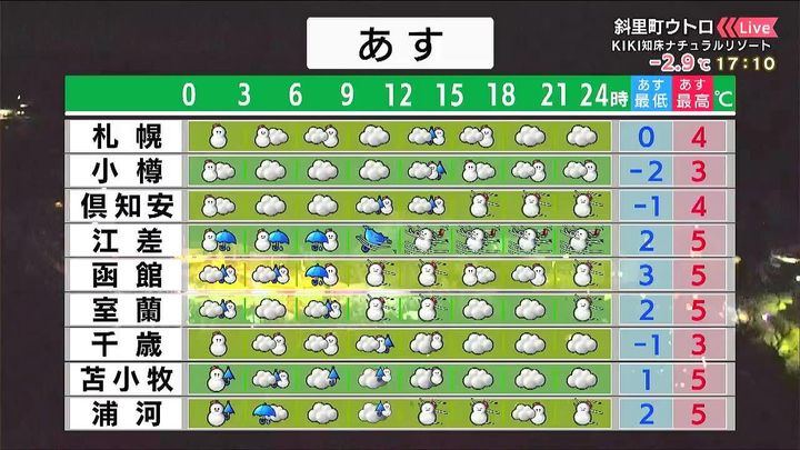 ・あすの札幌の朝昼晩の天気