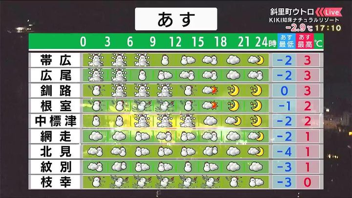 背景は3日午後5時ごろの斜里町ウトロ情報カメラ