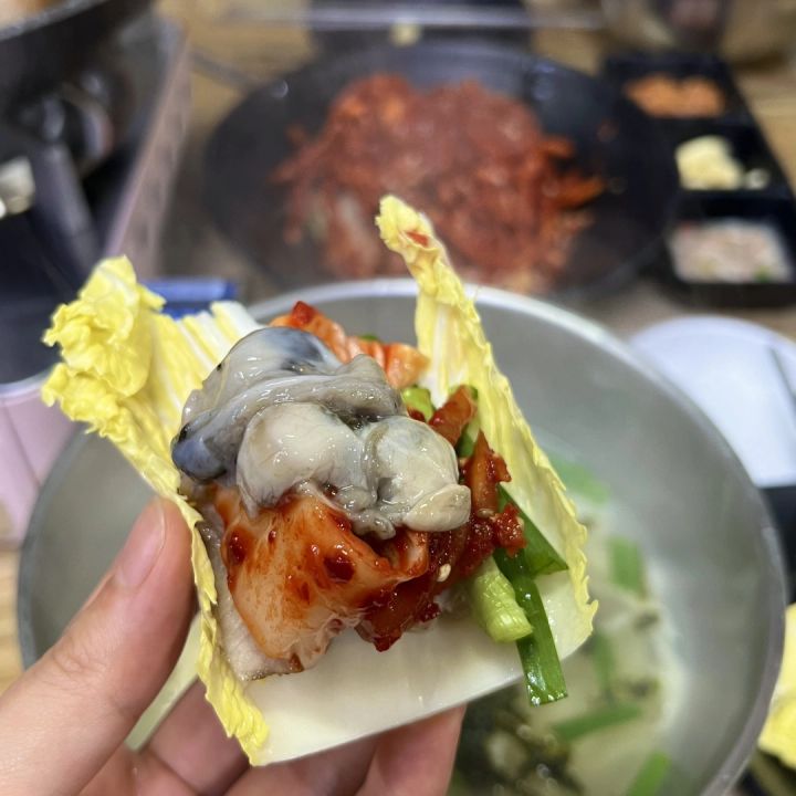 特に感動したのがセットでついてくるキムチ!程よいニンニクのコクと野菜の甘味、発酵の酸味でとってもポッサムとの相性がよかったです。また、中にはたくさんの牡蠣が隠れていて一緒に堪能することができました!
