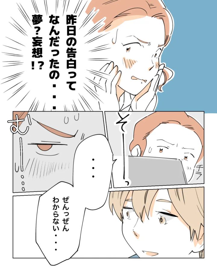 昨日の告白ってなんだったの・・・夢?妄想!?パソコンの陰からそーっと加賀谷くんを見てみたけれど・・・そこにはやっぱりいつも通りの加賀谷くんがいる。・・・加賀谷くんの考えていることがぜんっぜんわからない・・・。
