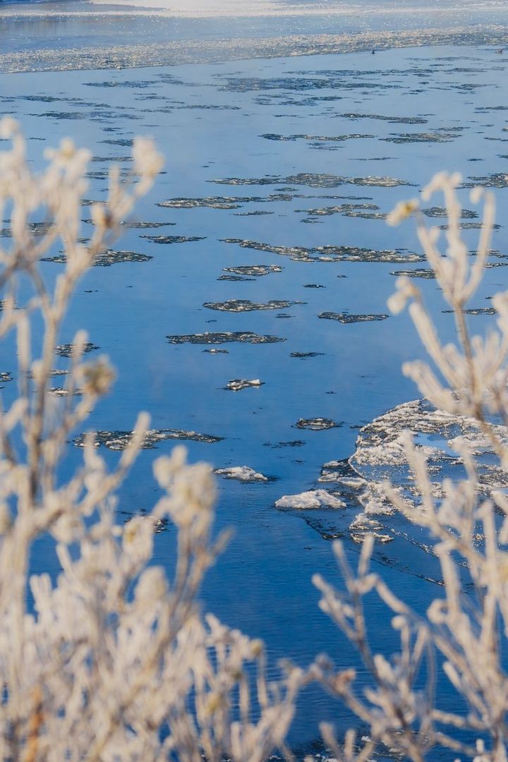 これは「シガ」という現象です。気温が低くなり、川の水面を無数のシャーベット状の薄い氷が流れます。