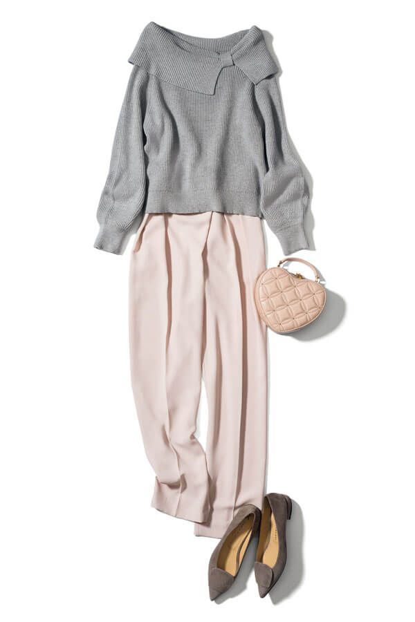 「なんとなくの黒」に落ち着きがちなニットは同じ無彩色のグレーやホワイトに置き換えるだけで断然おしゃれ♪ 着こなしの明度が上がるだけで、佇まいまであか抜けた印象に変化します。