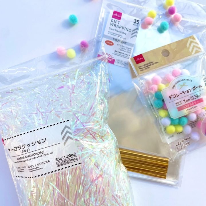 なんと、ラッピングに使用した商品は、すべてダイソーで購入したものなんだとか。詳しい工程を見てみましょう。