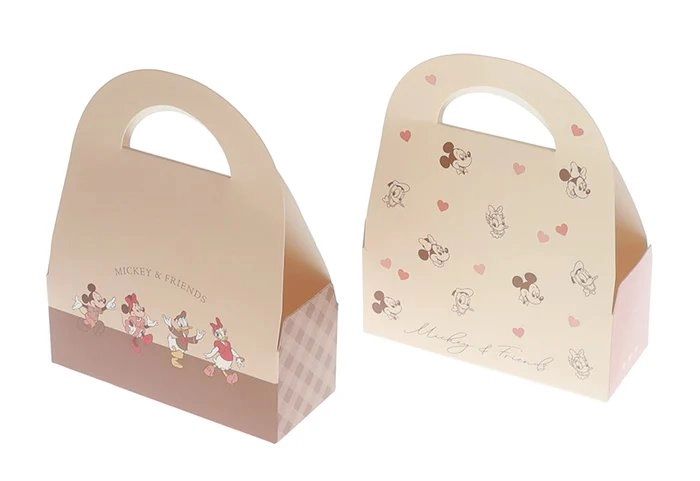こちらもディズニーデザインにキュンとする、ハンドルつきで渡しやすいデザインの「キャリーボックス」。高さもあるので、ケーキやブラウニーなど厚みがあるものの包装にも向いています。