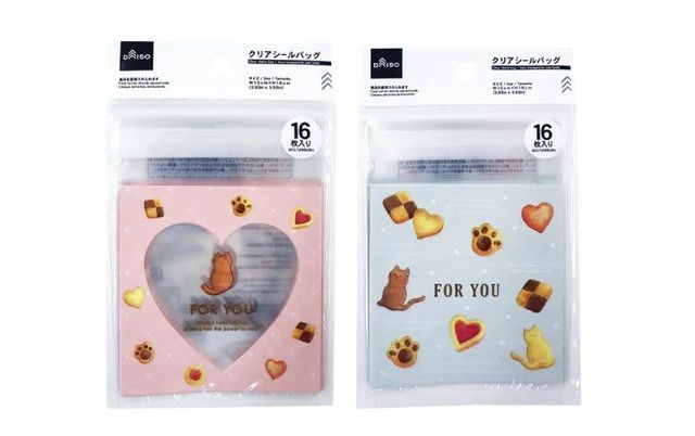 開け口に粘着テープがついており、難しいテクニックなしで素敵にラッピングできる「クリアシールバッグ」。バレンタインにぴったりなねこのクッキーモチーフのクリアシールバッグは、ねこ好きさんにあげれば喜ばれること間違いなし!