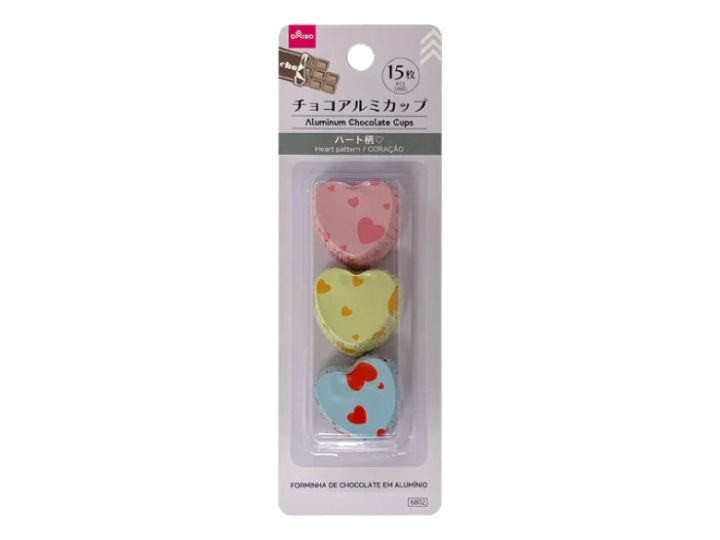 バレンタインでは定番のハート型アルミカップ。溶かしたチョコレートを流し入れるだけで完成しますが、アラザンやチョコスプレーなどでかわいくデコレーションするのがおすすめです。