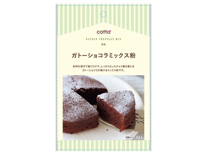 こちらの「ガトーショコラミックス粉」は、生クリーム・無塩バターと混ぜて焼くだけで、お店で食べるようなガトーショコラができあがるお手軽商品。しっかりとしたチョコレートの味わいを楽しめ、ふんわりしっとりした食感が特徴です。