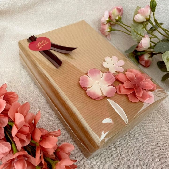・【ラッピングペーパー】【クリアバッグ】【造花】でシンプルな包装が一気にバレンタイン仕様!