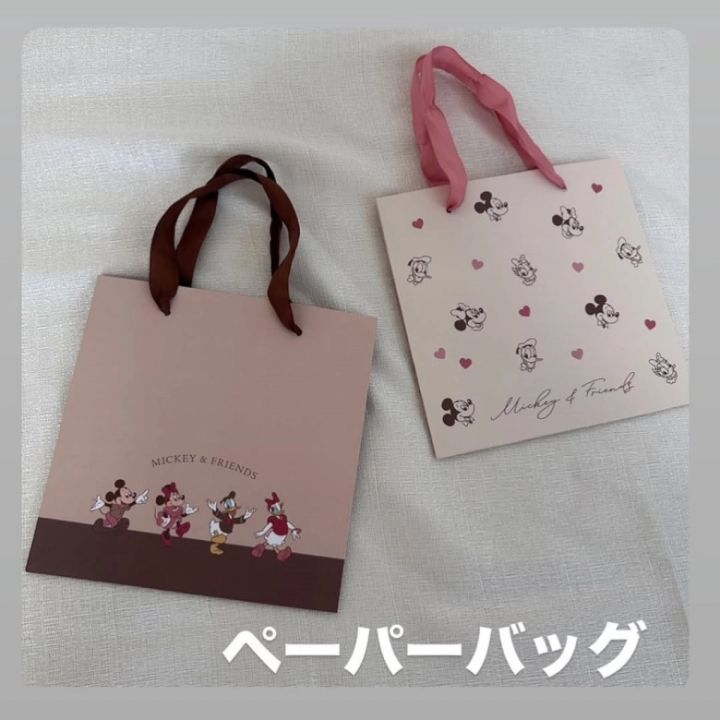 バレンタインに送るプレゼントを持ち歩くとき、せっかくならかわいい紙袋に入れたいですよね。そんなときにぴったりなのが、こちらのディズニーバレンタインデザインのペーパーバッグ!どちらもピンクやブラウンを基調としており、バレンタイン気分をアップしてくれます。