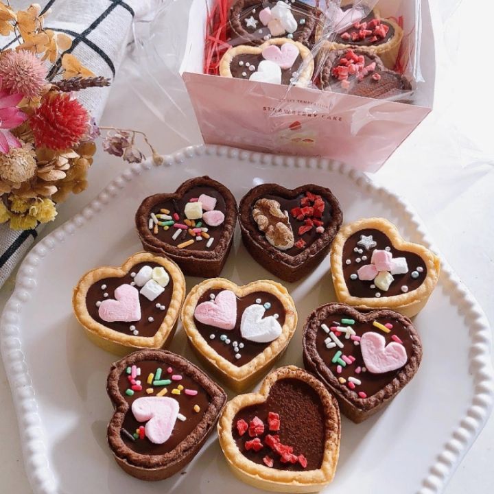 バレンタインにぴったりなハート型タルトカップ。チョコタルトを一から作るのは手間がかかりますが、これを使えば、溶かしたチョコレートを流し込んでトッピングするだけ!