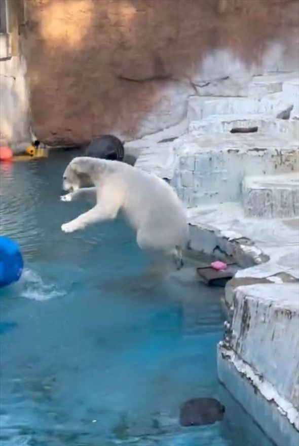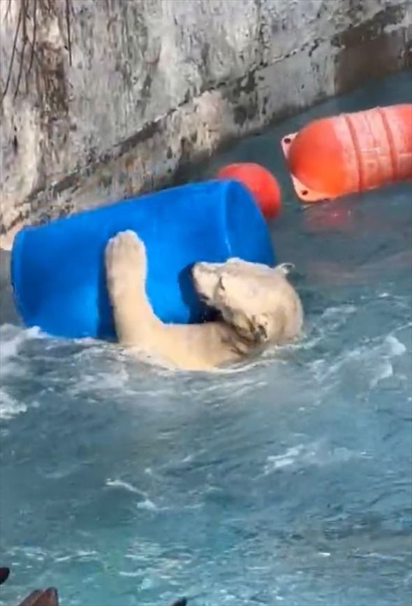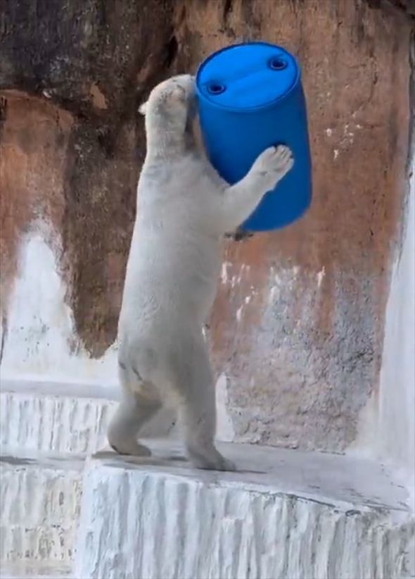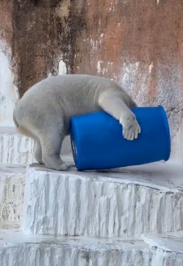 ドラム缶で遊び回るホッキョクグマ!はしゃいでいる姿がかわいい「弾けてるね!」「飛び込み方がかわいい」