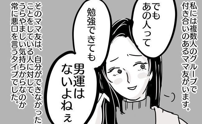 ママ友は、自分ができなかったことをしている人に関する悪口をよく言っています。例えば、会社の役職についている人を「仕事ばかりしてるからおしゃれに気をつかえていない」。