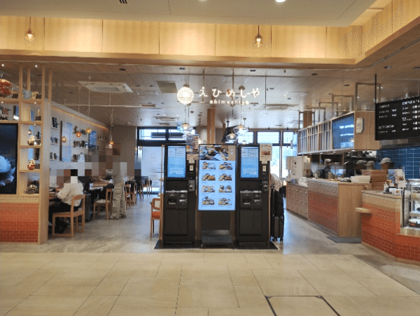改札側の入り口から、左手奥にある「えひめしや」さん。 この日は休日のお昼だったのでお客さんでいっぱいでした。