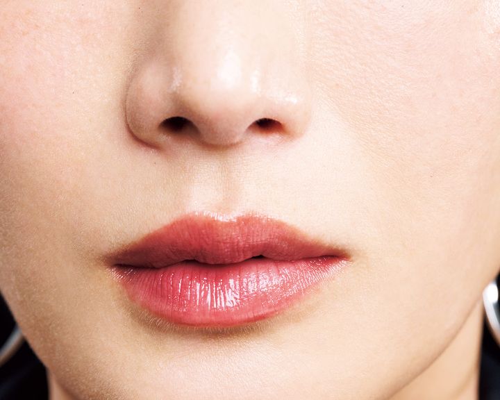 2をアプリケーターで輪郭をとりながらのせる。上唇の山を強調しないほうが今っぽく。