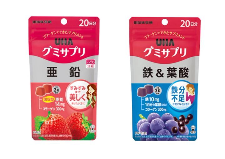 左・亜鉛20日分¥670、右・鉄&葉酸20日分¥616/ともにUHA味覚糖