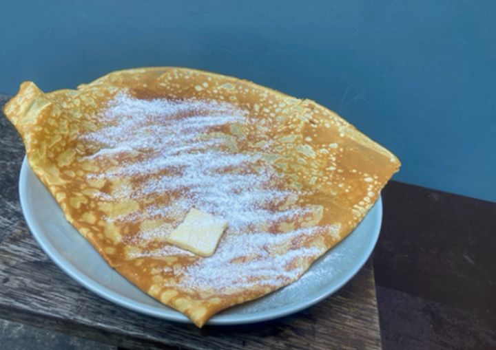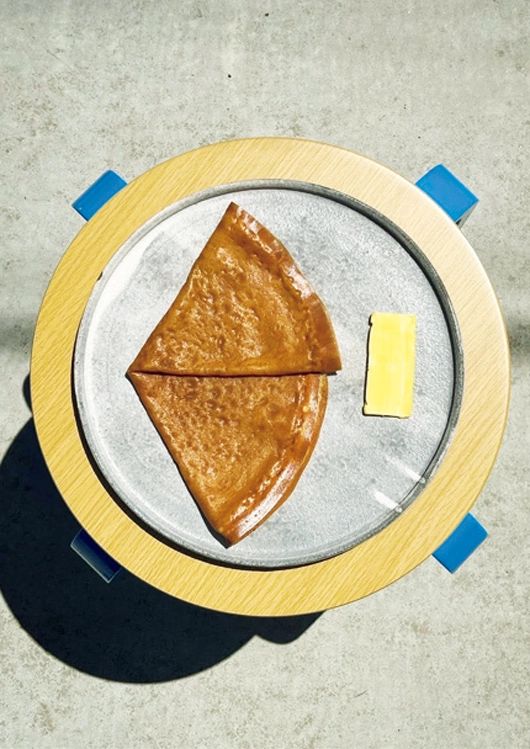 クレープ生地にシュガーやバターなどをのせて食べるシンプルなクレープが話題に。座ってお上品に味わうのがイマドキ。