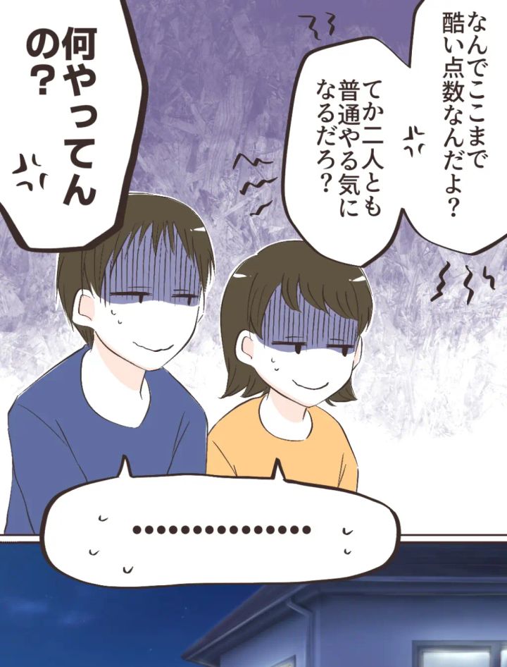 二人のテストの結果を見て愕然としたキコさんとショウヘイさん、「なんでここまで酷い点数なんだよ?てか二人とも普通やる気になるだろ?」「何やってんの?」「・・・」と二人して言葉を失いました。