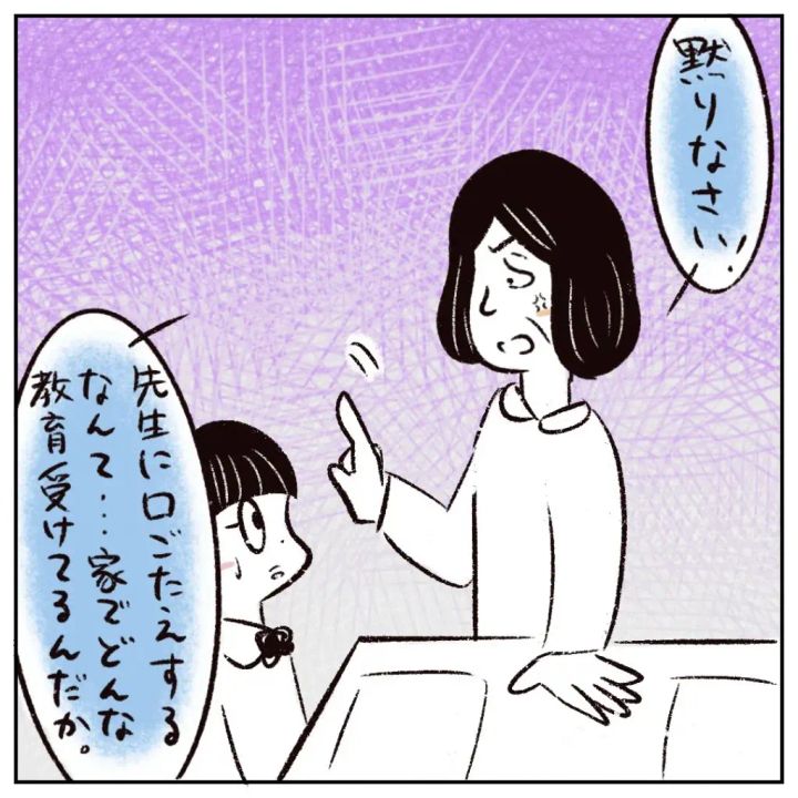 「黙りなさい!先生に口ごたえするなんて・・家でどんな教育受けてるんだか」呆れたようにまるさんに言う先生。