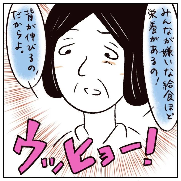 「みんなが嫌いな給食ほど栄養があるの!背が伸びるの!だからよ」とトンデモ発言を。
