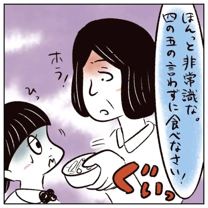 そして、「ほんっと非常識な。四の五の言わずに食べなさい!」そう言うと、おかずをまるさんの口元にぐいっと差し出すのでした。