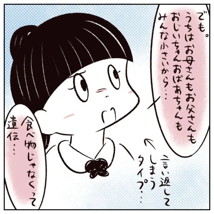「でも、うちはお母さんもお父さんも、おじいちゃんもおばあちゃんもみんな小さいから・・食べ物じゃなくて遺伝・・」とついつい言い返してしまうまるさん。