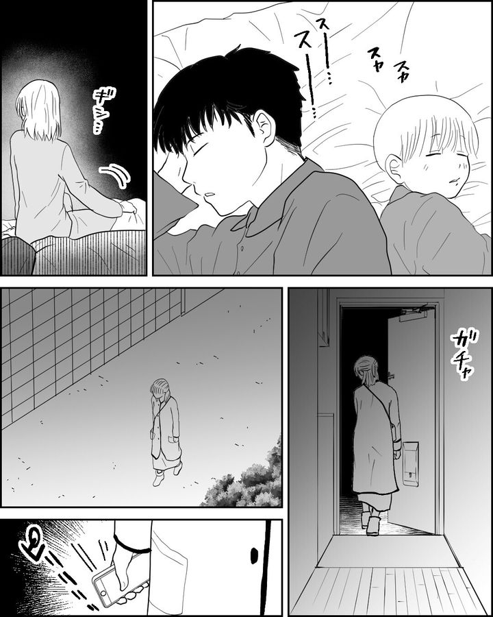 ・寝てる間に出ていけるなら、1人で抜け出すんじゃなくて子どもを抱いて行けば良いのに。寝てる時に触ると泣き叫んで手に負えなくなるような子なの? 冷蔵庫買ったり1人で家出したり、主人公が意味不明過ぎる。