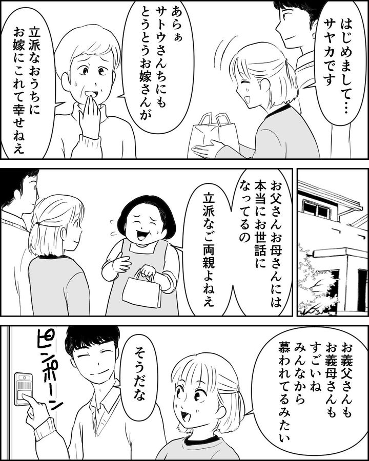 サヤカとカズマは結婚後しばらくはサヤカのアパートで暮らしていました。そしてほどなくサヤカは妊娠。サヤカはカズマと共に義両親に報告へ。引っ越しを考えていることを伝えると…