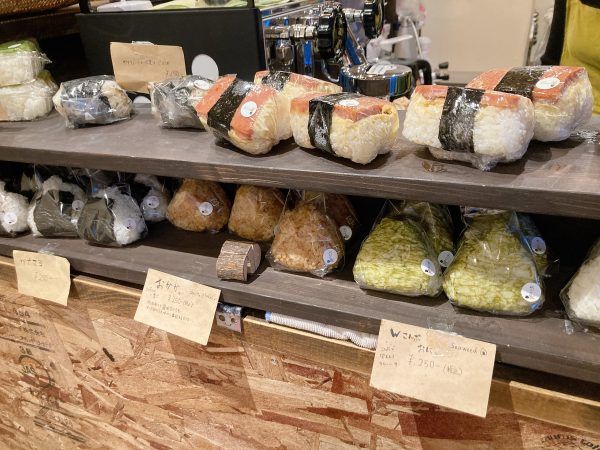 主人の大好物の「スパムおにぎり」と「おかか」をチョイス。 おにぎりはテイクアウトも可能なのだそう(完売次第終了)