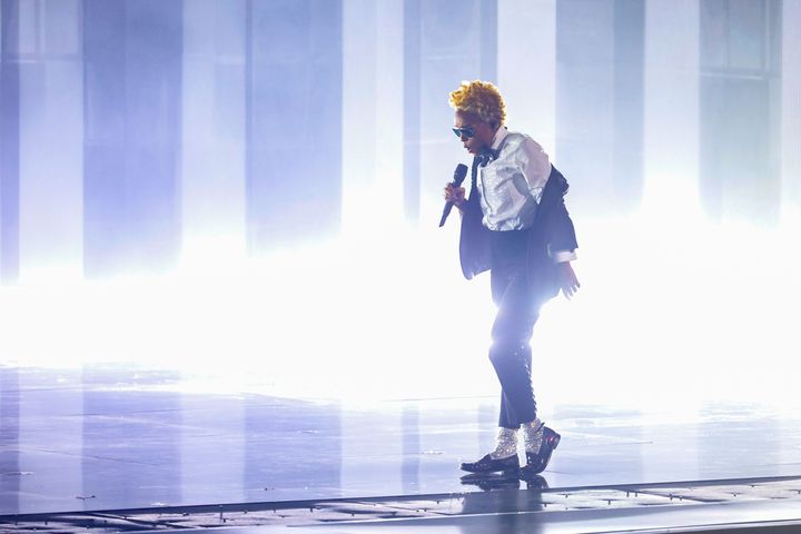 昨年11月3日に91歳で亡くなった名プロデューサー、クインシー・ジョーンズをトリビュートステージにジャネールはタキシードスーツに身を包んで登場。足もとはシルバーのソックスとペニーローファーを合わせ、サングラスをかけて彼が手がけたマイケル・ジャクソンの「Don't Stop 'til You Get Enough」をパワフルに歌い上げた。